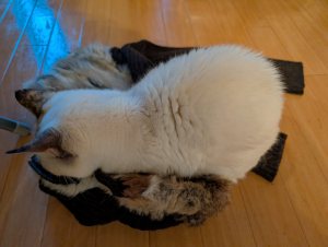 私の匂いがついているセーターの上で安心して寝ているしろちゃん